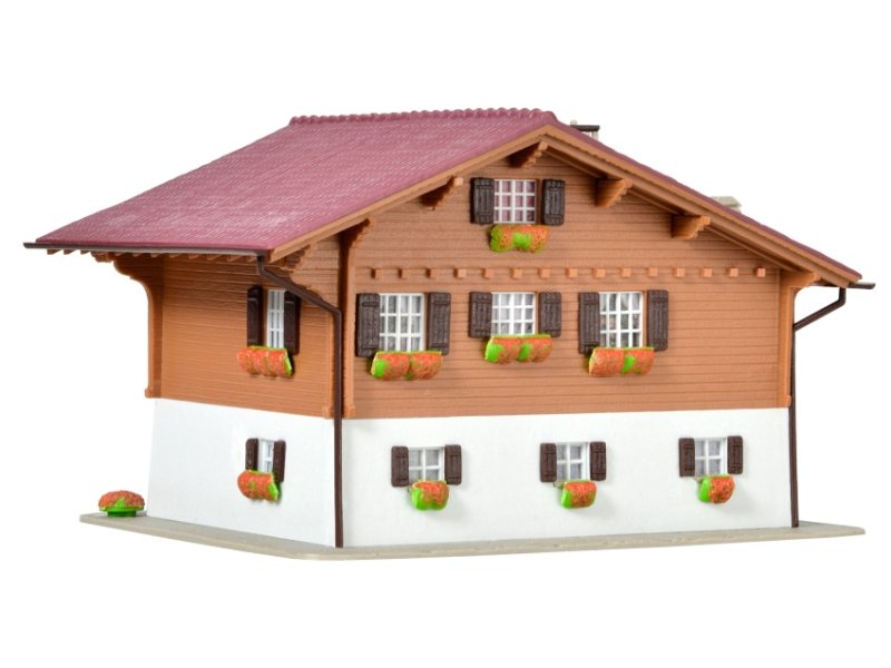 Bausatz. Das Dorf Brienz liegt umgeben von einer reizvollen Berglandschaft am östlichen Ende des Brienzersees im Kanton Bern in der Schweiz. Der fein detaillierte Bausatz dieses alpenländischen Chalets passt wunderschön zwischen freie Weiden und Nadelwälder und holt damit einen Hauch Urlaubsatmosphäre und ein Stück gute heile Welt auf die eigene Modellbahn. Maße: L 12 x B 9 x H 7 cm. Schwierigkeitsgrad: 2 (Fortgeschrittene).