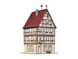 Bausatz. Die besondere Eigenart und die reiche Vielfalt der fränkischen Fachwerkbauten gipfeln in den ausgewählten Häusern am Marktplatz von Miltenberg am Main. Die Originale sind am Anfang des 16. Jahrhunderts entstanden. In ihrem Gleichklang von Zweckmäßigkeit und harmonischem Aufbau unterscheiden sich die vier Häuser wohltuend von manchen anderen Gebäuden. Bei häufig eng gezogenen Grundstücksgrenzen in mittelalterlichen Städten blieb den Erbauern nur in der Vertikalen eine hinreichende Ausdehnungsmöglichkeit. Charakteristisch für die fränkische Fachwerkbauweise ist die schmale Ständerordnung der Fachwerkkonstruktion und die auffällige Betonung der vertikalen Gefügeelemente. Das Miltenberger Ensemble von kibri besteht aus 4 harmonisch gestalteten Fachwerkbauten. Neben dem Fachwerkhaus am Markt gibt es das Haus mit Erker Art. 38902, das Fachwerk-Eckhaus Art. 38904 und das Torhaus Art. 38901. Die Hölzer zeigen im Modell braune und rotbraune Farben in unterschiedlichen Tönungen, die den Kontrast zu den hellen, meist weißen Gefachen betonen. Das kommt besonders im gewählten H0-Maßstab zur Geltung. Die Miltenberger Häuser lassen sich sehr wirkungsvoll mit bereits vorhandenen Stadthäusern von kibri kombinieren. Mit Stecksystem. Hergestellt im Zweifarben-Spritzgießverfahren. Maße: L 9,8 x B 11 x H 17,5 cm. Schwierigkeitsgrad: 2 (Fortgeschrittene).