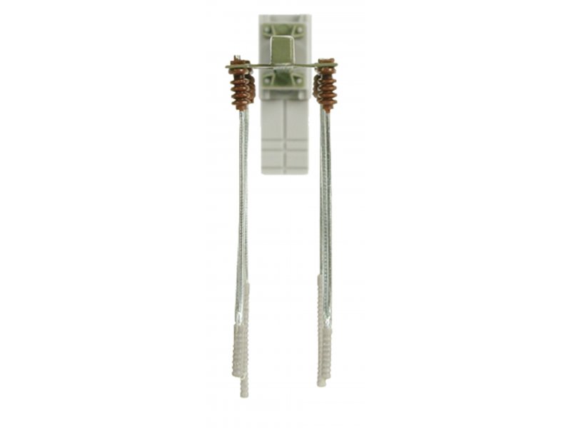 Mit elektrisch getrenntem Doppelausleger, filigrane Metallausführung. Mittlere Auslage: 3,4 cm. Höhe: 9,9 cm.