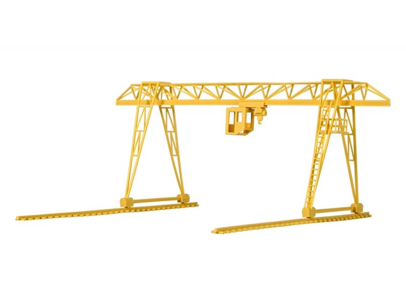 Solche Verladebrücken werden zum Umladen von großen, nicht standardisierten Frachteinheiten verwendet. Durchfahrtshöhe: 5 – 6 cm, Durchfahrtsbreite: 11 cm. Maße: L 18 x B 6,5 – 16 x H 7,5 cm.