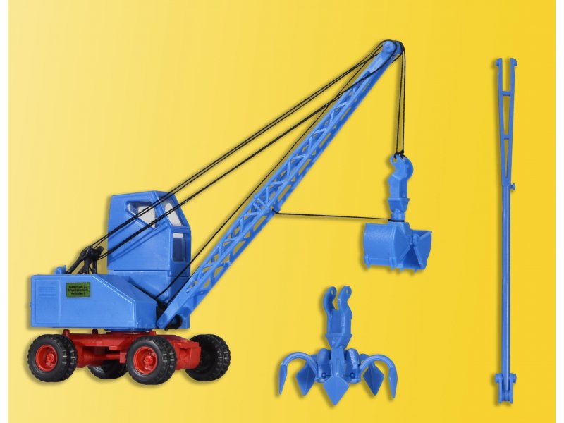 Bausatz. Vorbilddaten: Mit Einführung der Baggertypen 300 und 301 brachte FUCHS Anfang der sechziger Jahre einen Bagger auf den Markt, der weite Verbreitung fand. Überlebt haben zum Teil bis heute die Ausführungen als Kran oder Greifer. Im Umschlag von Holz, Kohlen oder Schrott und in der Landwirtschaft sowie bei der Bahn tun diese Geräte noch heute ihren Dienst. Die Ausführung mit hochgesetzter Kabine ermöglicht dem Fahrer den Überblick über hohe Bordwände oder Abteilmauern. Maße: L 4 x B 3 x H 4,5 – 8,5 cm. Schwierigkeitsgrad: 2 (Fortgeschrittene).