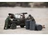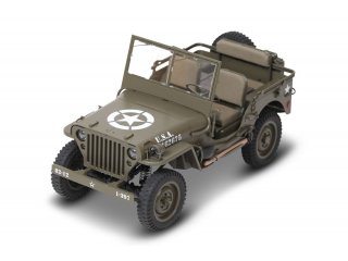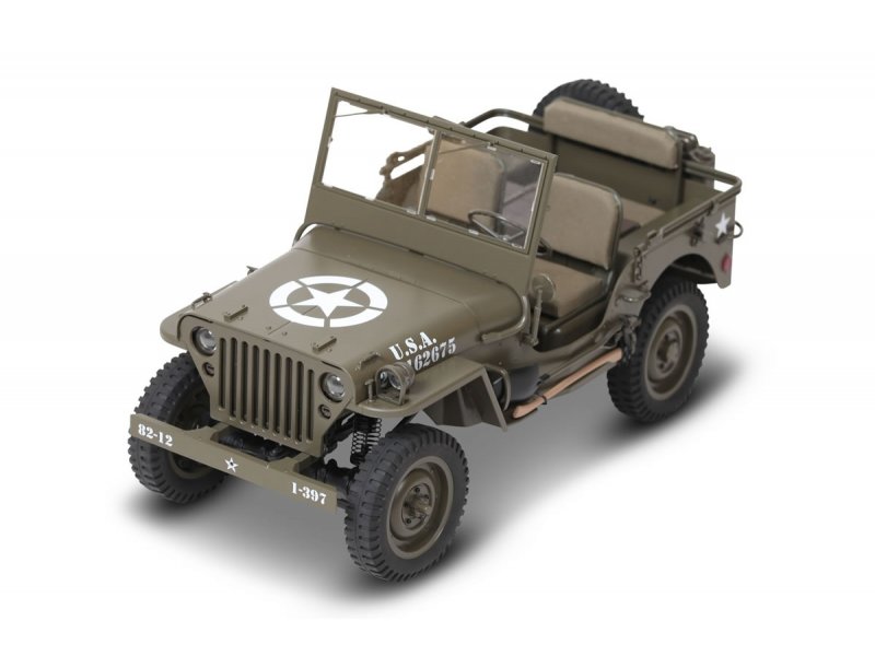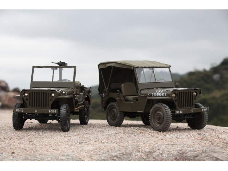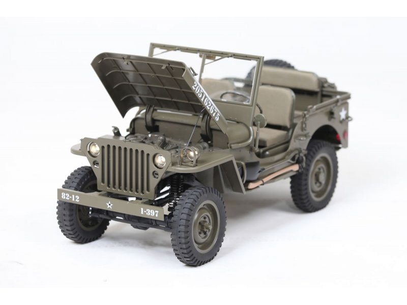 Scale-Enthusiasten werden die detailliert vorlackierte und vormontierte Karosserie mit funktionaler Beleuchtung genau so lieben wie das servogesteuerte Lenkrad, das funktionsfähige Reserverad und die klappbare Windschutzscheibe. Kleine Merkmale wie die Stoffsitze, die bemalte Axt und Schaufel tragen zum realistischen Aussehen des Fahrzeugs bei. Das Cockpit ist mit den Instrumenten, Schalthebeln und den Sitzen ist ideal für Soldatenfiguren im Maßstab 1:6 geeignet.