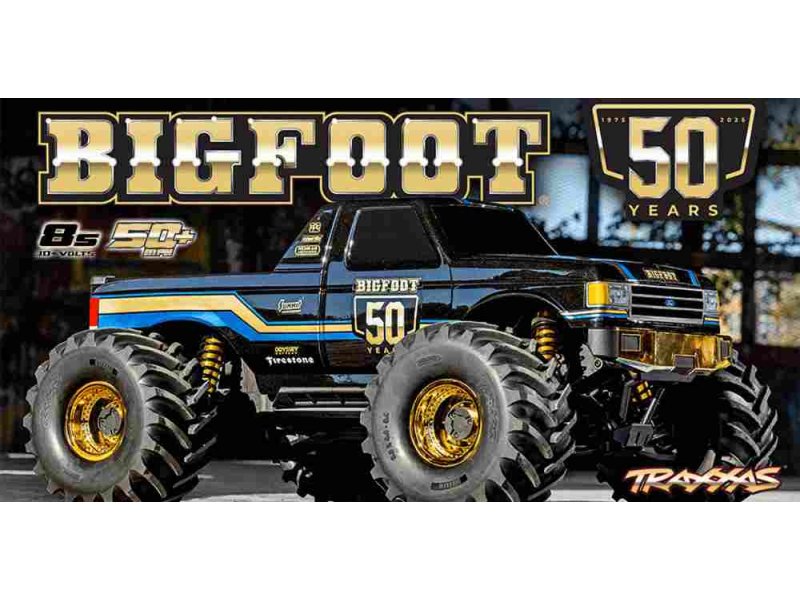 Die X-Monster BIGFOOT 50th Anniversary Commemorative Edition würdigt die erfolgreiche Geschichte des originalen Monstertruck mit einer einzigartigen gold-schwarzen Karosserie und goldeloxierten Accessoires. Jeder Truck verfügt über lasergravierte Aluminium-Nummernschilder am Chassis und an der Karosserie, sowie ein passendes Echtheitszertifikat aus Aluminium. Mit einer limitierten Auflage von nur 1.975 nummerierten Trucks wird dieser legendäre Monstertruck nicht lange erhältlich sein.
