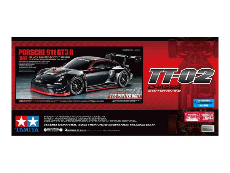 Basierend auf dem Porsche 911 GT3 992 (TAMIYA 300058712) ist dies jetzt die RVersion. Diese Version wurde entwickelt um die GT3 Vorschriften zu entsprechen.