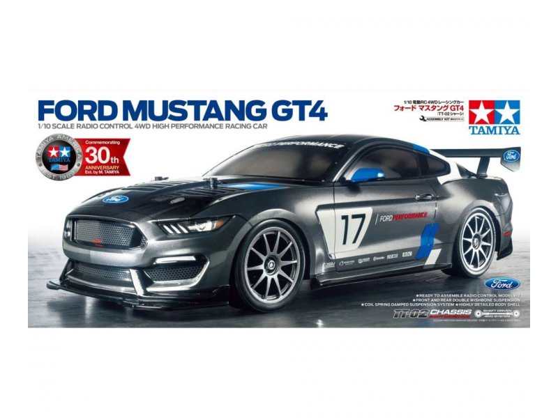 Diese Version den TT-02 Chassis beinhaltet die vorbildgetreue Ford Mustang GT Karosserie.
