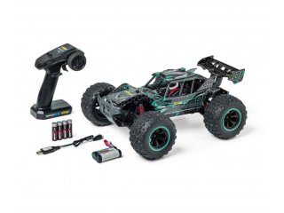 Der 1:10 Offroad Fighter ist ein absolutes Muss für Speed-Enthusiasten und bietet unvergleichliche Action für RC-Einsteiger und Fortgeschrittene. Mit seinem extrem geländegängigen 4WD-Antrieb, robusten Stahl-Antriebswellen und dem stabilen Differenzialgetriebe meistert er mühelos jedes Terrain. Der leistungsstarke 550 Brushed-Motor ermöglicht atemberaubende Geschwindigkeiten und die Wheelie-Funktion sorgt für spektakuläre Stunts. Zusätzlich ist der Offroad Fighter spritzwassergeschützt und bereit für jede Herausforderung. Mit der hochwertigen 2,4 GHz Fernsteueranlage und dem leistungsstarken Akku inklusive Ladegerät ist dieser Buggy perfekt ausgestattet. Erlebe den ultimativen Offroad-Spaß und entdecke die Faszination des RC-Fahrens!