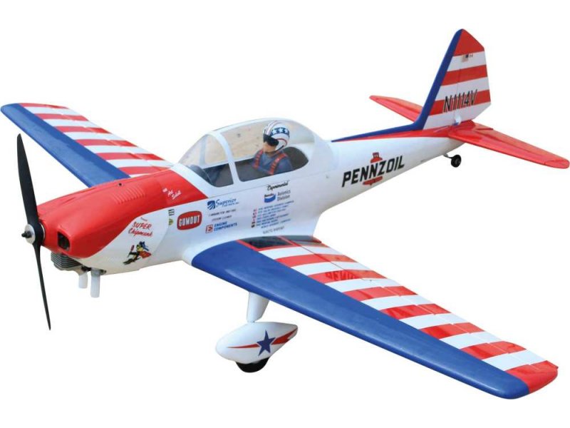 Funktionelle Klappen sorgen für mehr Realismus und einen größeren Flugbereich. Voll kunstflugtaugliches Flugzeug, stabil und reaktionsschnell.
