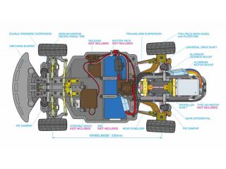 Die hintere Anordnung des Unterdecks kann verändert werden, um den Radstand auf 251 mm zu ändern (Doppelquerlenker-Hinterradaufhängung). Für einen Radstand von 251mm ist eine separat erhältliche Karosserie erforderlich.)