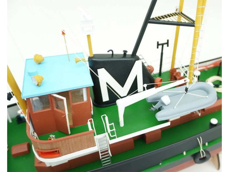 Dieser Baukasten ist mit einem tiefgezogenem ABS-Rumpf und lasergeschnittenen Holzteilen ausgestattet. Ruder, Schiffswelle mit Stevenrohr und Schiffsschraube sind für den Antrieb mit Elektromotor vorgesehen. Alle Beschlagteile sind mit Bauplan und Bauanleitung mit Baustufenfotos im Lieferumfang enthalten.