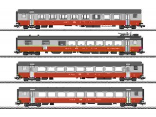 Vorbild: Vier Einheits-Personenwagen Typ EWIII der Schweizerischen Bundesbahnen (SBB/CFF/FFS). Ein Halbgepäckwagen Bauart AD, 1. Klasse, ein Speisewagen Bauart WR und zwei Großraumwagen Bauart B, 2. Klasse. Kieselgrau/Blutorange Grundfarbgebung des Swiss Express. Zuglauf: Genève–Lausanne–Bern–Zürich HB. Wagen-Ordnungsnummern 1, 13 und 14. Speisewagen ohne Ordnungsnummer. Betriebszustand ab 1975.