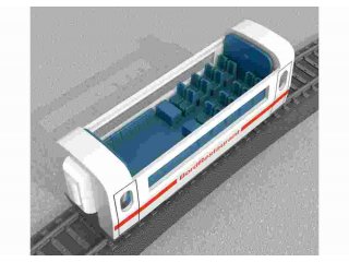 Modell: Wagen mit Inneneinrichtung und Raum zum Beladen. Transparentes Dach abnehmbar. Wagen mit Magnetkupplungen.Länge des Wagens 11,2 cm