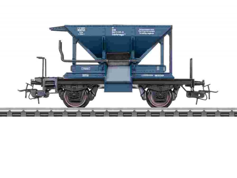 Vorbild: Schotterwagen als Bahndienstwagen Bauart Talbot. Ozeanblaue Grundfarbgebung. Deutsche Bundesbahn (DB). Betriebszustand Ende der 1980er Jahre.