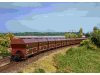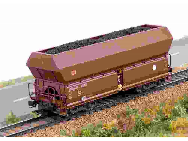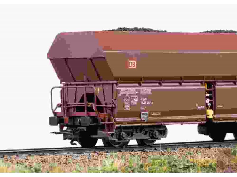 Vorbild: 12 vierachsige, großräumige, offene Selbstentladewagen Bauart Falns 182 der Deutschen Bahn AG (DB AG). Eingesetzt zum Transport von nässeunempfindlichen Schüttgütern. Rotbraune Grundfarbgebung. Alle Wagen mit 2 Übergangsbühnen. 6 Wagen mit Handbremse an einer Übergangsbühne und 6 Wagen ohne Handbremse. Drehgestelle der Bauart 665. Betriebszustand um 2015.