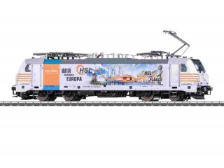 Vorbild: Elektrolokomotive Baureihe 186 der Railpool GmbH, vermietet an die HSL. Betriebsnummer 186 181-4. Betriebszustand ab 2018 mit attraktiver Werbegestaltung HSL - Wir verbinden Europa.