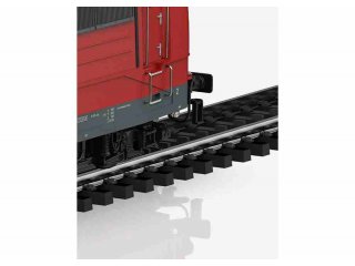 Modell: Mit Digital-Decoder mfx+ und umfangreichen Geräuschfunktionen. Geregelter Hochleistungsantrieb mit Schwungmasse, zentral eingebaut. Jeweils zwei Achsen in jedem Drehgestell über Kardan angetrieben. Haftreifen. Fahrtrichtungsabhängig wechselndes Dreilicht-Spitzensignal und zwei rote Schlusslichter konventionell in Betrieb, digital schaltbar. Spitzensignal an Lokseite 2 und 1 jeweils digital separat abschaltbar. Doppel-A-Licht-Funktion. Führerstandsbeleuchtung mit der Fahrtrichtung wechselnd und Maschinenraumbeleuchtung digital schaltbar. Zusätzlich kann eine Anfahrlampe fahrtrichtungsabhängig digital geschaltet werden. Beleuchtung mit wartungsfreien warmweißen und roten Leuchtdioden (LED). Mit Pufferspeicher. Detailliert ausgeführte Dachaufbauten mit neu konstruierten Einholm-Stromabnehmern. Stromabnehmer digital heb- und senkbar. Viele separat angesetzte Teile wie Radimitationen, Griffstangen, Sandkästen, UIC-Steckdosen und Dachleitungen. Pufferhöhe nach NEM. Bremsleitungen, Schraubenkupplungen und verschiedene Steckdosen liegen als separat ansteckbare Teile bei. Länge über Puffer 22,4 cm.