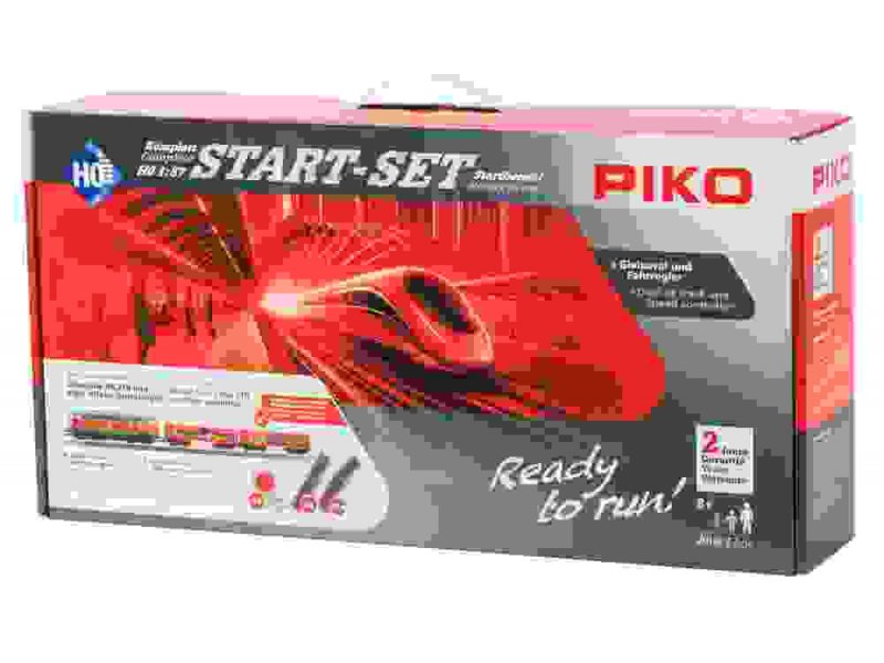 Sonderneuheit 2025: Mit dem PIKO Start-Set rund um die Diesellok BR 218 der DB AG tauchen Kinder ab 8 Jahren spielend leicht in die Welt der Modelleisenbahn ein. Das Set ist speziell für junge Eisenbahnfans entwickelt und sorgt durch seine robuste Ausführung und spannende Zugzusammenstellung für stundenlangen Spielspaß.Die kräftige Diesellok BR 218 überzeugt mit einer Beleuchtung, die sich automatisch in Fahrtrichtung wechselt – genau wie beim großen Vorbild. Mit dabei sind zwei offene Güterwagen vom Typ Eaos, die mit bunten Graffiti gestaltet sind. Das Highlight: Die farbenfrohen Designs besitzen einen Glow-in-the-Dark-Effekt und bringen die Wagen auch im Dunkeln zum Leuchten.Für den sofortigen Spielstart ist ein komplettes Gleisoval aus dem PIKO A-Gleis mit Bettung enthalten (Grundfläche ca. 110 × 88 cm, Mindestaufbaufläche 120 × 98 cm). Die im Set beiliegende analoge Steuerung macht die Bedienung besonders einfach: Auspacken, aufbauen, starten.Dieses PIKO Start-Set kombiniert robuste Technik mit kreativen Details und weckt Begeisterung für die Eisenbahn. Eltern können sich darauf verlassen, dass ihre Kinder mit diesem Set ein spannendes und abwechslungsreiches Hobby erleben – sicher und fantasievoll. Das Start-Set ist zudem mit dem gesamten PIKO H0-Gleichstrom Sortiment kompatibel und lässt sich jederzeit ausbauen.