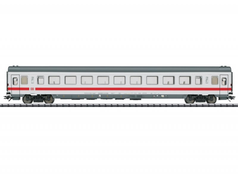 Modell: Serienmäßig eingebaute LED-Innenbeleuchtung und Strom führende Kupplungen. Die Innenbeleuchtung funktioniert im Verbund mit dem IC-Steuerwagen und kann über einen Decoder im Steuerwagen digital ein- und ausgeschaltet werden. Stirnseitig rot transparente Schlusslicht-Einsätze an den Wagenenden. Typspezifisch gestaltete Schürze. Mit Drehgestelle MD ohne Generator. Bauliche Merkmale druckertüchtigter Wagen wie beispielsweise SIG-Übergänge, Einstiegstüren und Fenster. Aufgedruckte Wagenlaufschilder. Befahrbarer Mindestradius 360 mm. Länge über Puffer ca. 28,2 cm.